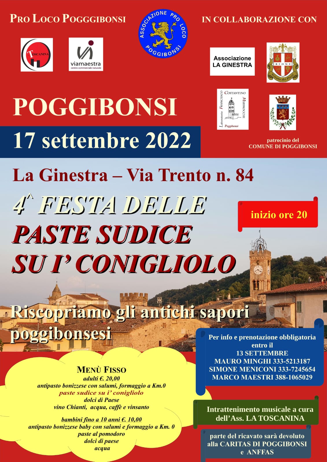 La quarta edizione dell’evento “PASTE SUDICE SU I’ CONIGLIOLO” si conferma un’ottima occasione per poter riscoprire gli antichi sapori poggibonsesi.