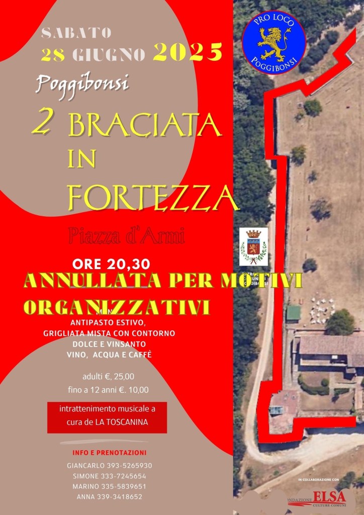 Sabato 28 Giugno nella splendida cornice rinascimentale della Fortezza di Poggio Imperiale si svolgerà la Seconda edizione della “Braciata in Fortezza”.