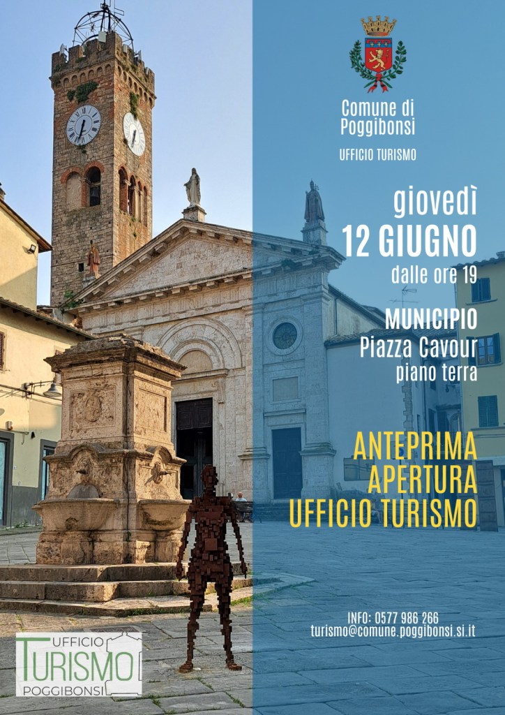 Giovedì 12 giugno in anteprima e venerdì 27 giugno in forma definitiva è stato aperto l’Ufficio Turistico in collaborazione tra il Comune di Poggibonsi e la Pro Loco. L’ufficio si trova in Piazza Cavour al piano terreno del Palazzo Comunale.