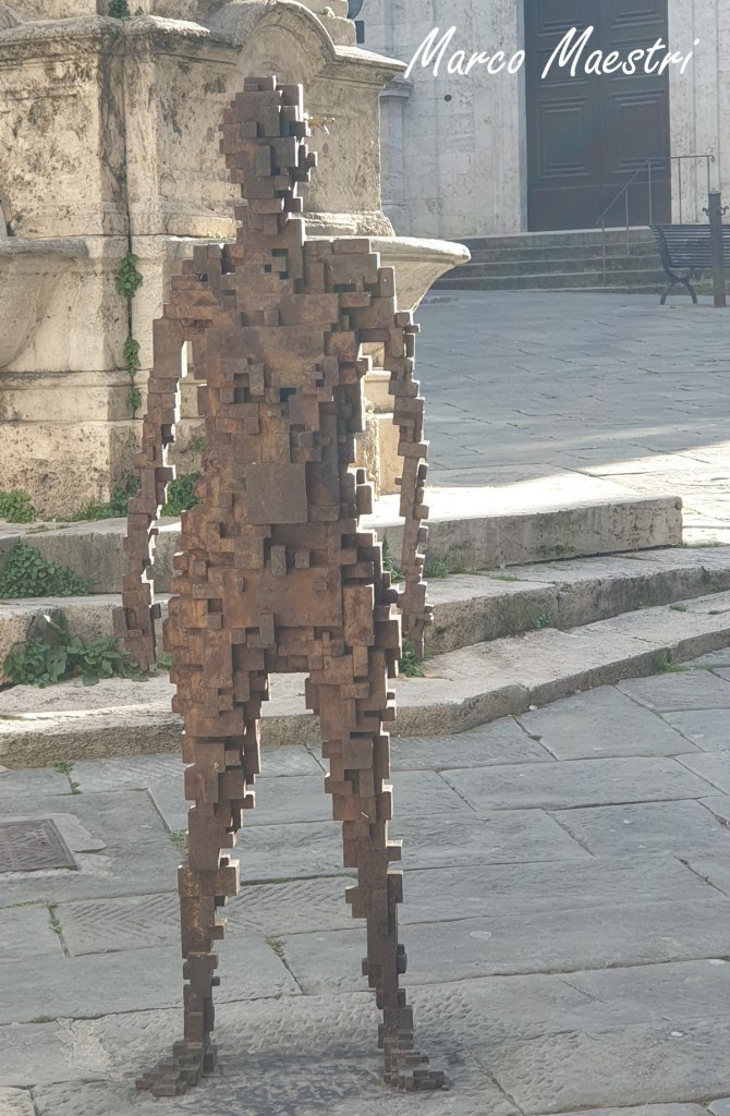 In occasione della nona edizione della manifestazione Arte all’Arte, a cura dell’associazione Arte Continua, nel 2004 Antony Gormley ha realizzato sette sculture di ferro in pixel per rendere onore alla città di Poggibonsi. L’artista ha preso come modello per le sue opere sei poggibonsesi e un turista di passaggio e, sui loro calchi, ha creato corpi umani senza fattezze caratterizzanti, quasi a voler annullare le loro differenze per arrivare ad una celebrazione dell’essere umano in quanto tale. I risultati di questo progetto sono stati posti in luoghi diversi della città per creare una “collective memory map”, parole dello stesso artista, una mappa che rappresenta la memoria collettiva della città. I luoghi sono stati scelti attraverso un’indagine fatta sulla stessa popolazione poggibonsese, dove, tra le varie domande, si è chiesto agli abitanti di descrivere i posti che per loro rappresentavano l’identità culturale del paese, come veicolo sia di aspetti positivi che negativi della sua storia. Le statue sono poi state collocate in quei luoghi cari alla popolazione, in una celebrazione della città come crocevia (rappresentata dalla statua del visitatore di passaggio) e come bacino di una forte memoria storica che permette una continuità dal passato fino ai giorni nostri.
